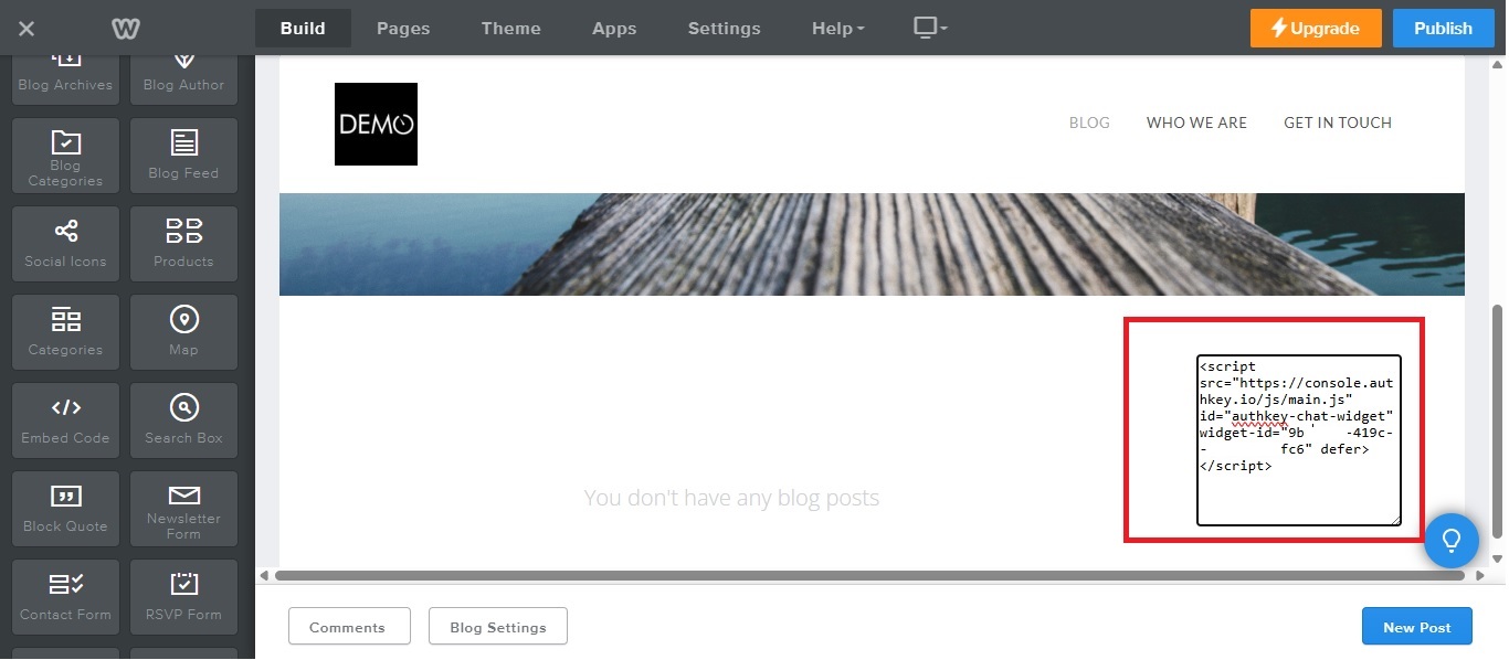In this guide, you’ll learn step by step how to integrate the Authkey WhatsApp Chat Widget into your Weebly website.