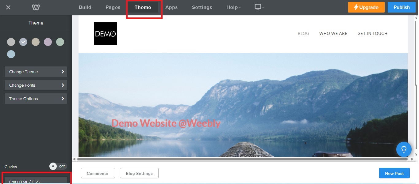 Log in to your Weebly Admin Account and go to Edit Site → Theme.